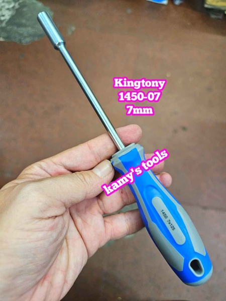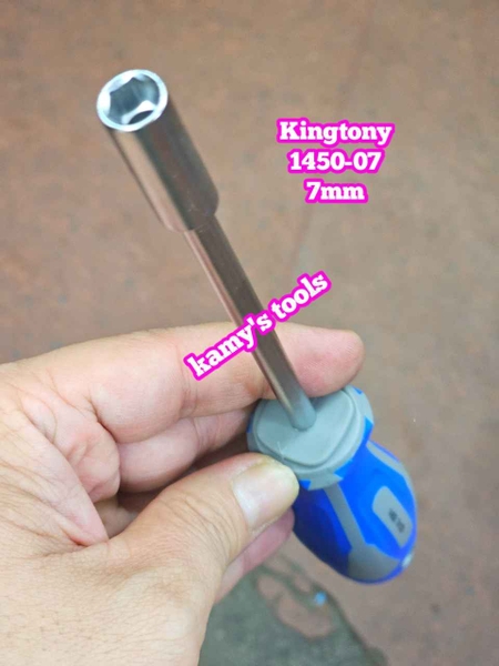 1450-07 Tua vít cán vặn ốc đầu tuýp lục giác Kingtony 7mm thân dài 125mm luôn cán 235mm