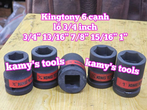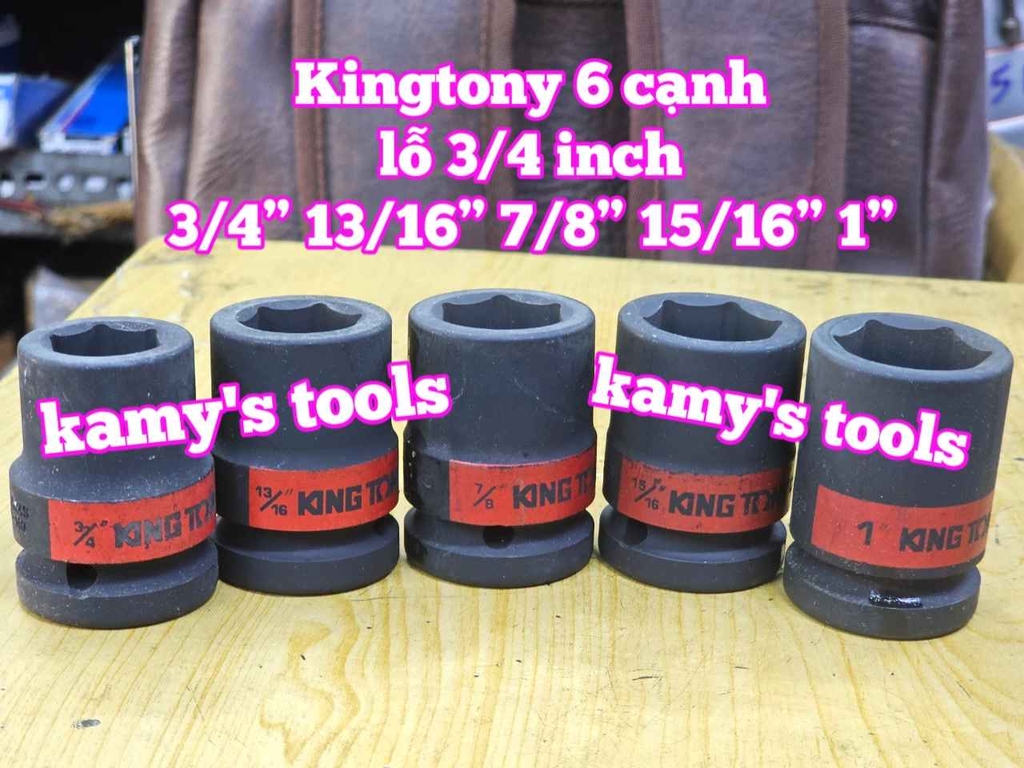 3/4” 13/16” 7/8” 15/16” 1” đầu tuýp khẩu lỗ 3/4 inch 6 cạnh lục giác Kingtony