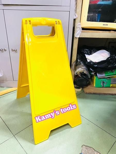 Biển có màu vàng đậm, chân mở chữ A cứng cáp, trọng lượng khoảng 1kg nên có thể dựng một cách vững vàng và dễ nhìn thấy.