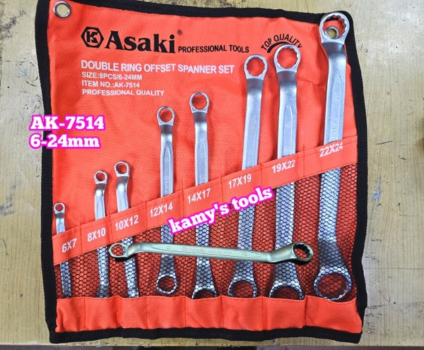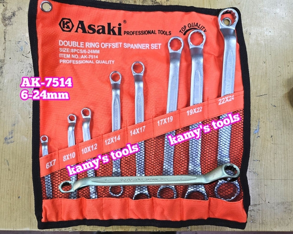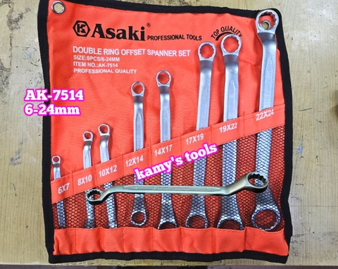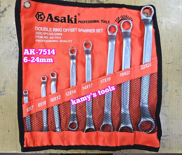 Bộ cờ lê 2 đầu vòng Asaki AK-7514 8 chi tiết 6-24mm