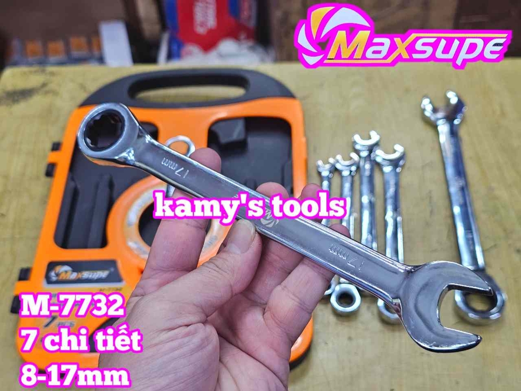 Hãy liên hệ với kamytools để biết thêm thông tin chi tiết sản phẩm bộ cờ lê vòng miệng tự động 72 răng 7 chi tiết Maxsupe M-7732 gồm 8mm 10mm 12mm 13mm 14mm 17mm 19mm