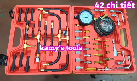 Kamy’s tools chuyên phân phối các loại dụng cụ kiểm tra áp suất bơm xăng hay còn được gọi là bộ đồng hồ đo áp suất hệ thống nhiên liệu động cơ bơm xăng 42 chi tiết.