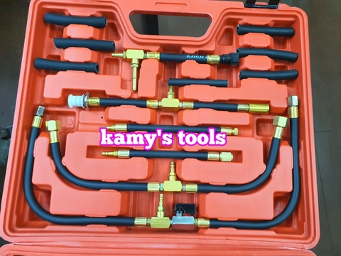 Bộ dụng cụ chuyên dùng để kiểm tra áp suất bơm xăng cho các xe ô tô du lịch với nhiều hang khác nhau một cách chính xác nhất qua đó hỗ trợ cho người thợ sửa chữa đánh giá mức độ sai lệch cũng như sửa chữa hệ thống bơm xăng của xe ô tô.