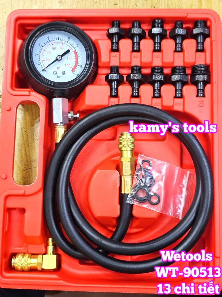 Hãy liên hệ với kamytools để biết thêm thông tin chi tiết sản phẩm bộ đồng hồ kiểm tra áp suất dầu nhớt động cơ 13 chi tiết Wetools WT-90513