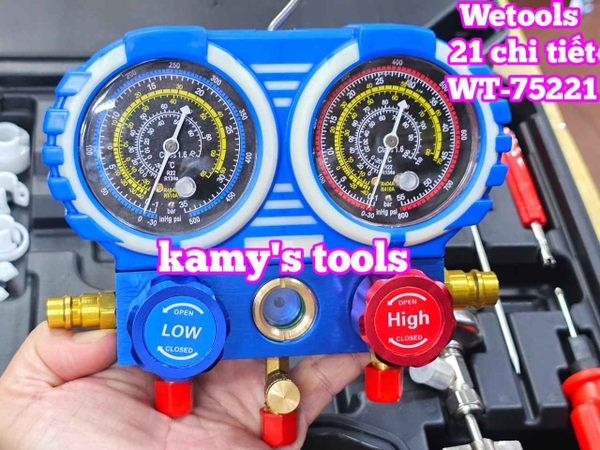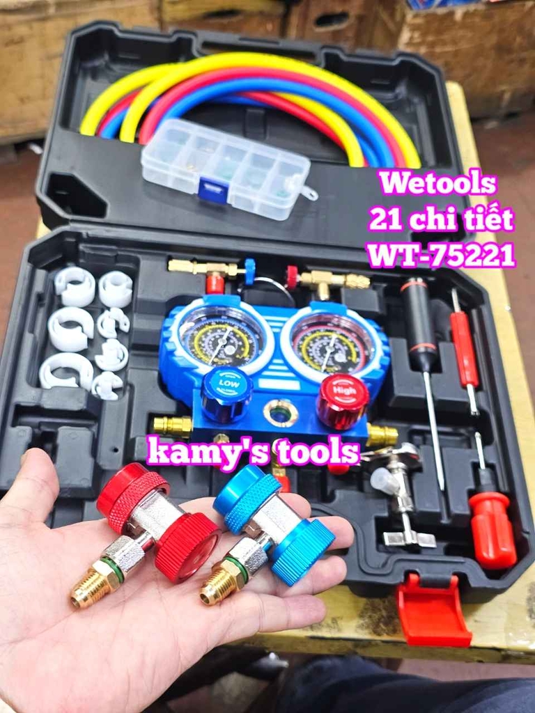 Hãy liên hệ với kamytools để biết thêm thông tin chi tiết sản phẩm bộ đồng hồ nạp ga lạnh điều hòa ô tô R134A R410A R22 R404A Wetools 21 chi tiết WT-75221