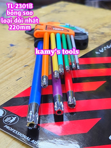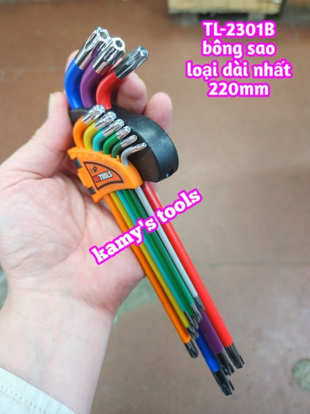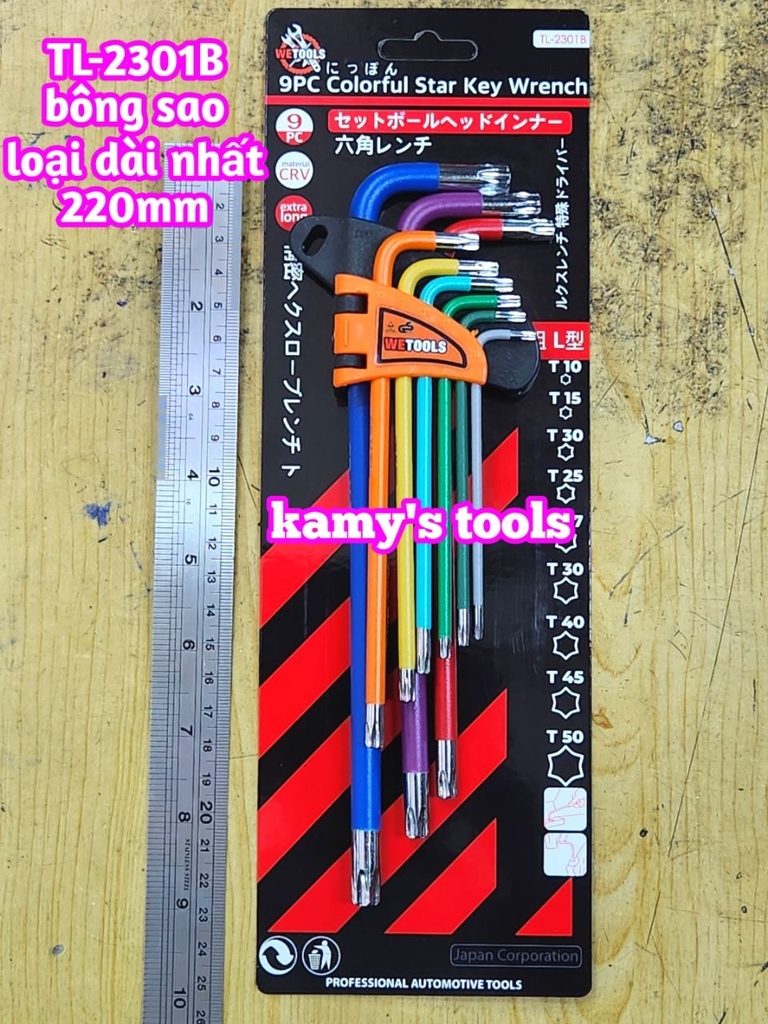 Hãy liên hệ với kamytools để biết thêm thông tin chi tiết sản phẩm bộ lục giác bông sao hoa thị MÀU thép S2 Wetools 9 chi tiết T10-T50 TL-2301B loại dài nhất 220mm.