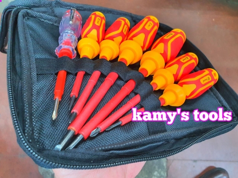 Bao gồm 7 cây với các kích cỡ thông dụng nhất. Sản phẩm được bọc cao su dày cách điện.