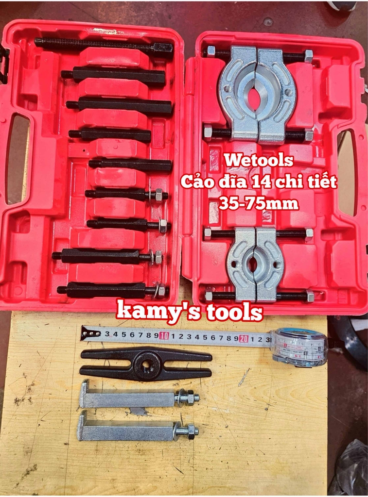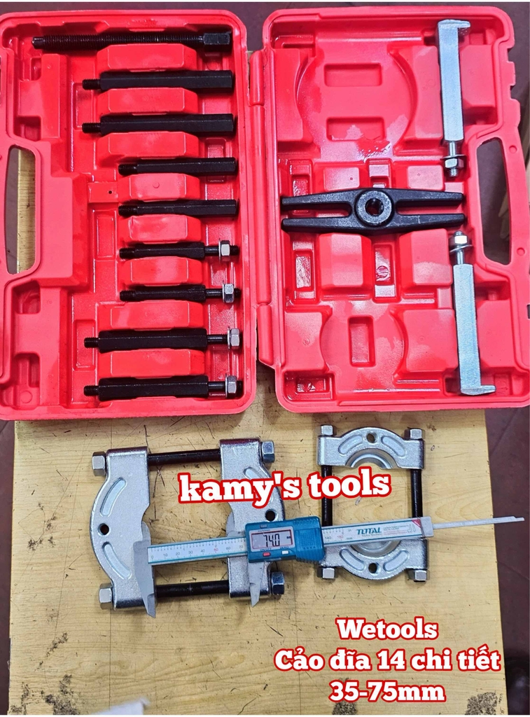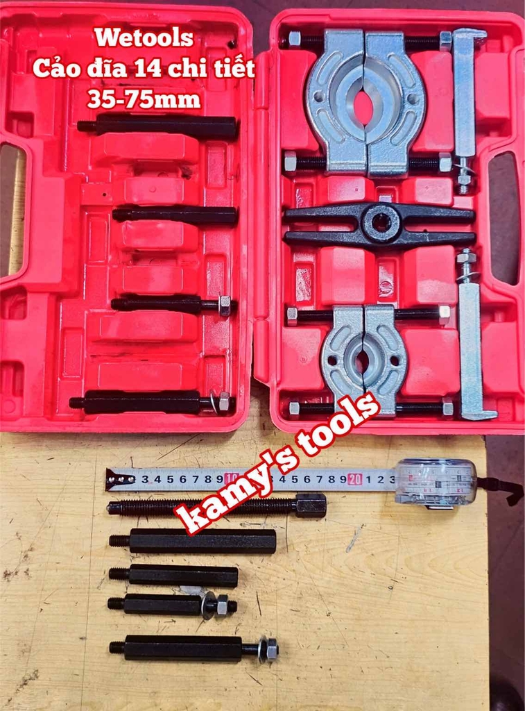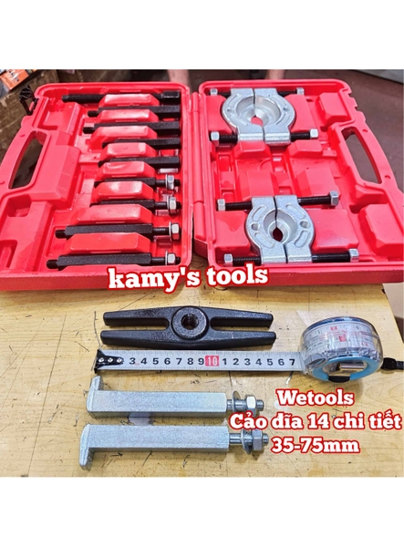 Bộ vam cảo đĩa chặn tháo vòng bi bạc đạn 50mm 75mm, bộ cảo đĩa mặt trăng 14 chi tiết Wetools WT-50201