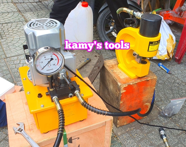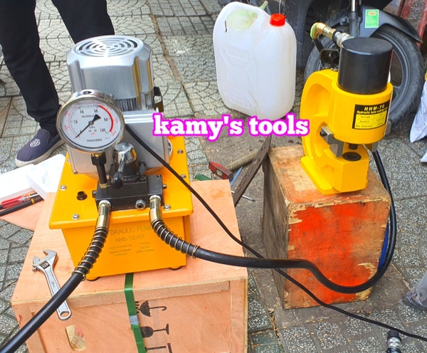 Chú ý: Giá sản phẩm chỉ bao gồm bơm điện thủy lực 2 đường dầu HHB-700AB chưa bao gồm đầu đột lỗ thủy lực như hình ảnh đăng trên.