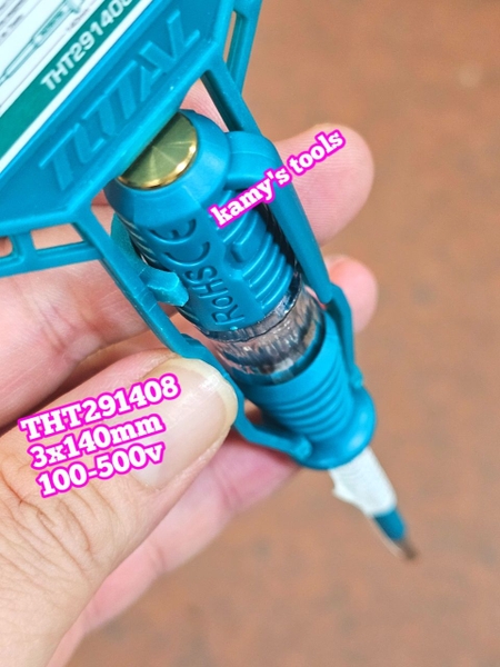 Hãy liên hệ với kamytools để biết thêm thông tin chi tiết sản phẩm bút thử điện Total model THT291408 dài 140mm.