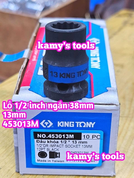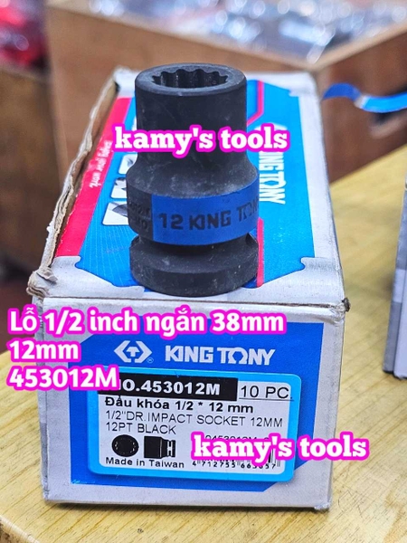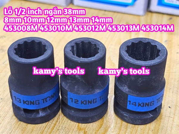 Đầu tuýp 1/2 inch bông 12 cạnh đen ngắn 38mm Kingtony 8mm 10mm 12mm 13mm 14mm 453008M 453010M 453012M 453013M 453014M