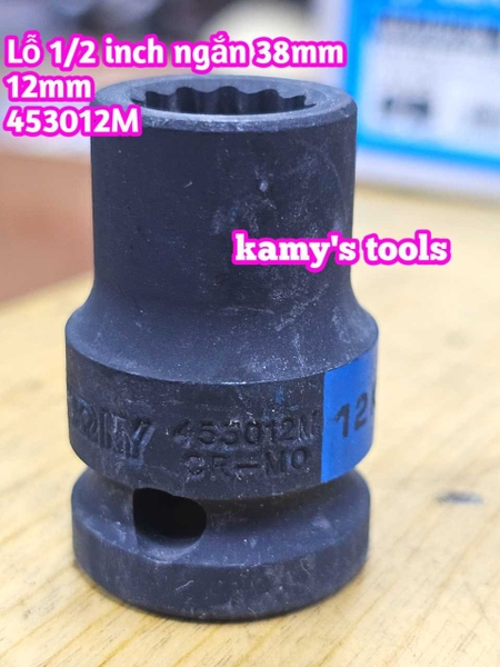 Đầu tuýp 1/2 inch bông 12 cạnh đen ngắn Kingtony 12mm model 453012M, có độ sâu sử dụng là 9mm.