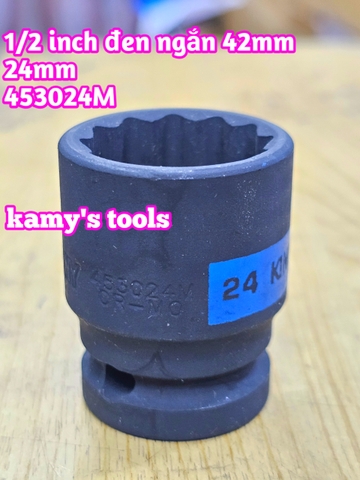 Đầu tuýp 1/2 inch bông 12 cạnh đen ngắn Kingtony 24mm model 453024M, chiều dài 42mm