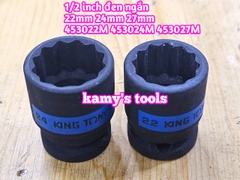 Đầu tuýp 1/2 inch bông 12 cạnh đen ngắn Kingtony 22mm 24mm 27mm 453022M 453024M 453027M