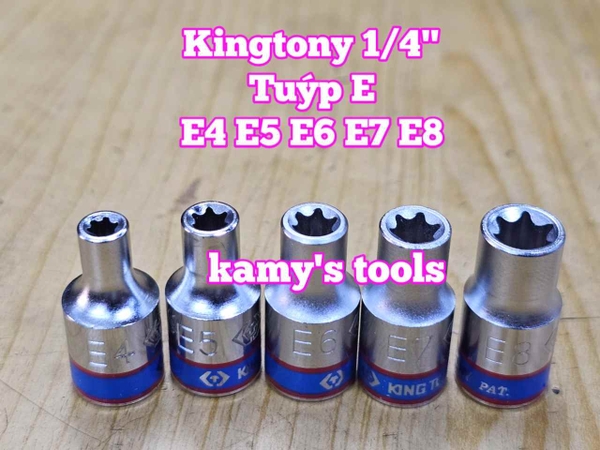 Đầu tuýp đầu khẩu E 1/4 inch dài 24mm Kingtony E4 E5 E6 E7 E8 model 237504M 237505M 237506M 237507M 237508M