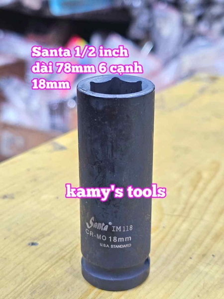 Đầu tuýp khẩu 1/2 inch đen dài Santa 6 cạnh lục giác 18mm IM118,