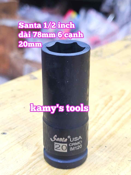 Đầu tuýp khẩu 1/2 inch đen dài Santa 6 cạnh lục giác 20mm IM120,