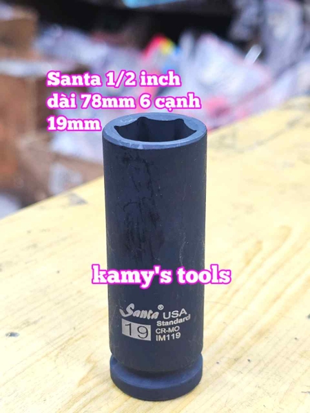 Đầu tuýp khẩu 1/2 inch đen dài Santa 6 cạnh lục giác 19mm IM119,