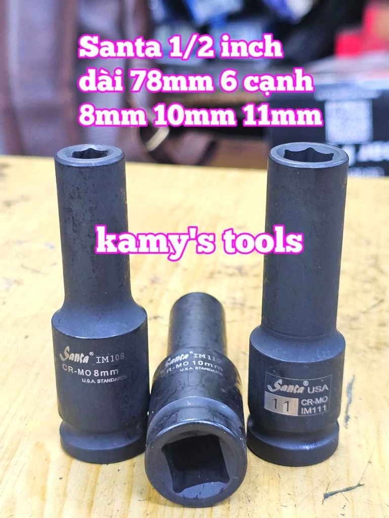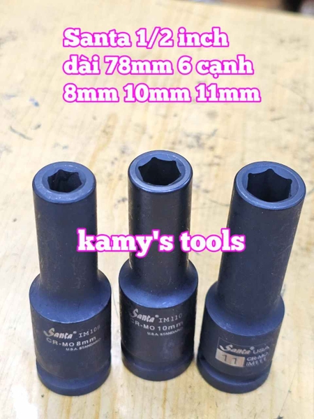 Hãy liên hệ với kamytools để biết thêm thông tin chi tiết sản phẩm đầu tuýp khẩu 1/2 inch đen dài lục giác 6 cạnh 78mm Santa 8mm 10mm 11mm IM108 IM110 IM111.