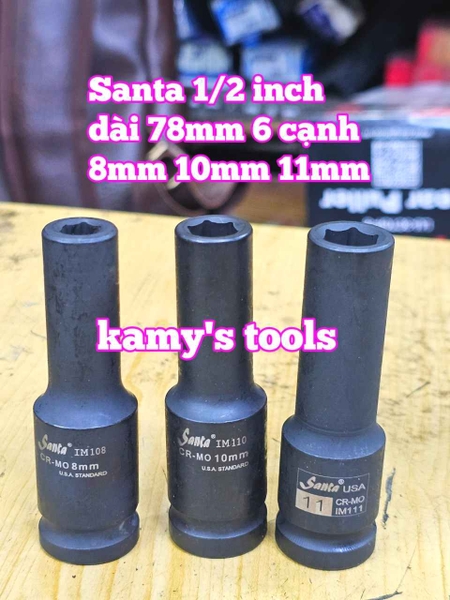 Đầu tuýp khẩu 1/2 inch đen dài lục giác 6 cạnh 78mm Santa 8mm 10mm 11mm IM108 IM110 IM111