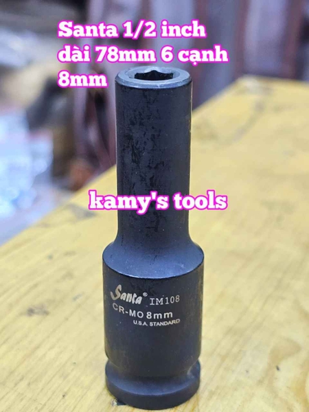 Đầu tuýp khẩu 1/2 inch đen dài Santa 6 cạnh lục giác 8mm IM108,