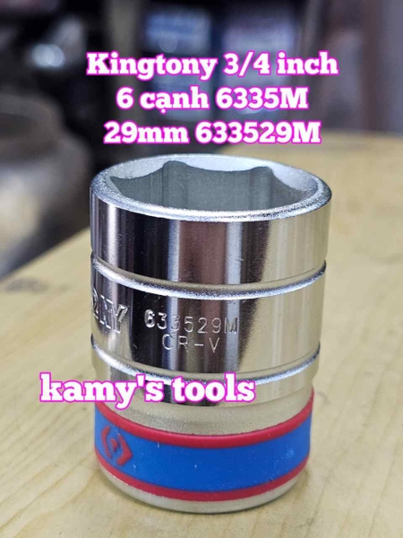 Đầu tuýp đầu khẩu 3/4 inch 6 cạnh trắng Kingtony 29mm 633529M,