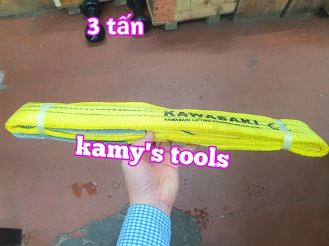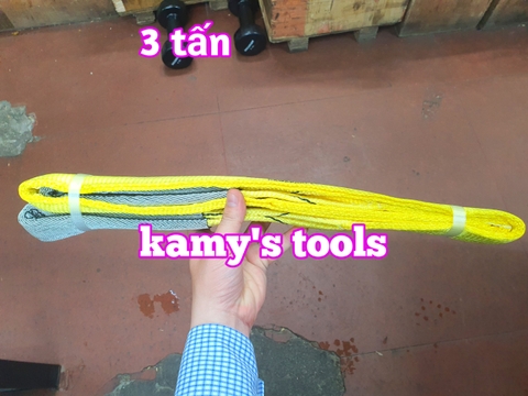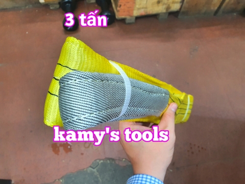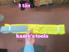 Dây cáp vải cẩu hàng bản dẹp 3 tấn, Hệ số 5:1, dài 1m-10m Hệ số an toàn: 5:1 Loại bản dẹp đường kính 50mm Loại: 2 đầu mắt Màu sắc: vàng Tải trọng nâng: 3 tấn