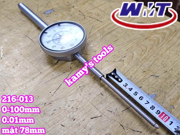 Đồng hồ so 0-100mm sai số 0.01mm WMT model 216-013 mặt 78mm thân thép cao cấp nặng 512g