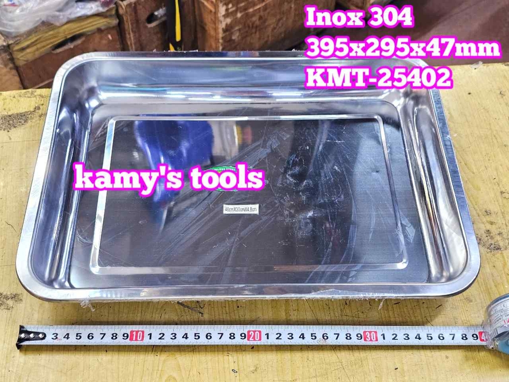 Khay inox hình chữ Nhật inox 304 đựng dụng cụ đồ nghề thực phẩm thức ăn 395xx295x47mm Kamytools KMT-25402