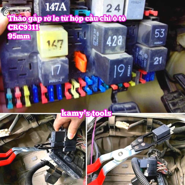 Hãy liên hệ với kamytools để biết thêm thông tin chi tiết sản phẩm kìm tháo gắp rơ le điện từ hộp cầu chì xe hơi ô tô mở tối đa 95mm dài 220mm Wetools CRC9311.