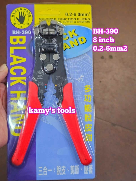 Kìm tuốt dây điện bấm cos đa năng Black Hand BH-390 dài 8 inch bấm tuốt dây 0.5-6mm2.