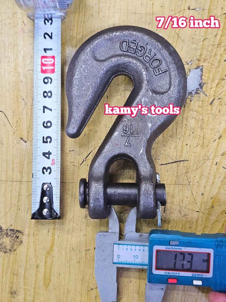 Móc xích cẩu 7/16" thường được sử dụng cho các loại xích 12mm, nhưng thực tế ta có thể sử dụng được xích có đường kính từ 14mm trở lại.