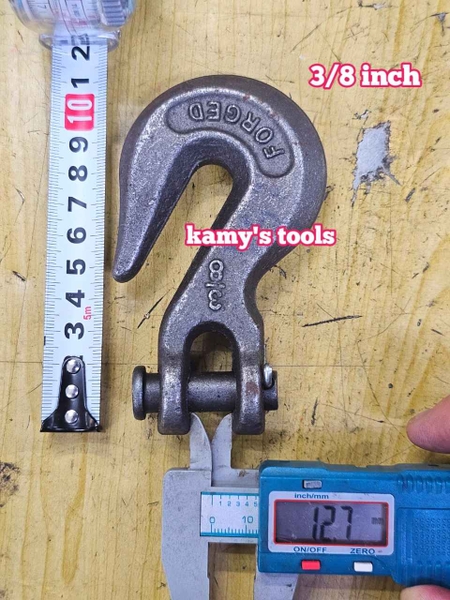Móc xích cẩu 3/8" thường được sử dụng cho các loại xích 10mm, nhưng thực tế ta có thể sử dụng được xích có đường kính từ 12mm trở lại.