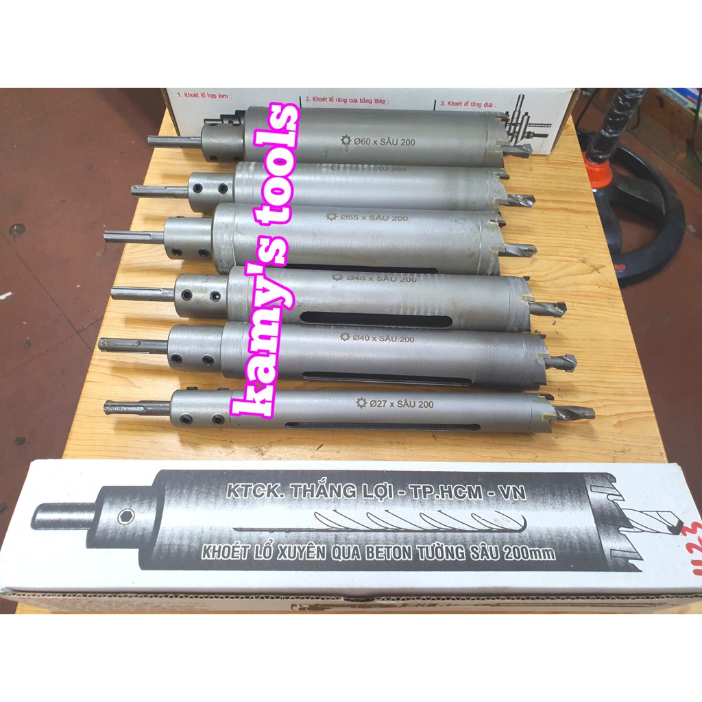 Mũi Khoan Rút Lõi Khoét Lỗ Xuyên Tường 27, 30, 32, 34, 42, 46, 50, 55, 60mm Dài 200mm Thắng Lợi