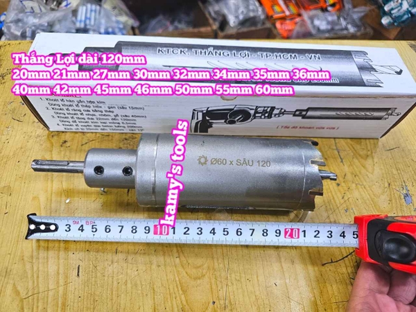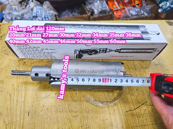 Hãy liên hệ với kamytools để biết thêm thông tin chi tiết sản phẩm mũi khoan rút lõi xuyên tường dài 120mm Thắng Lợi 20mm 21mm 27mm 30mm 32mm 34mm 35mm 36mm 40mm 42mm 45mm 46mm 50mm 55mm 60mm.