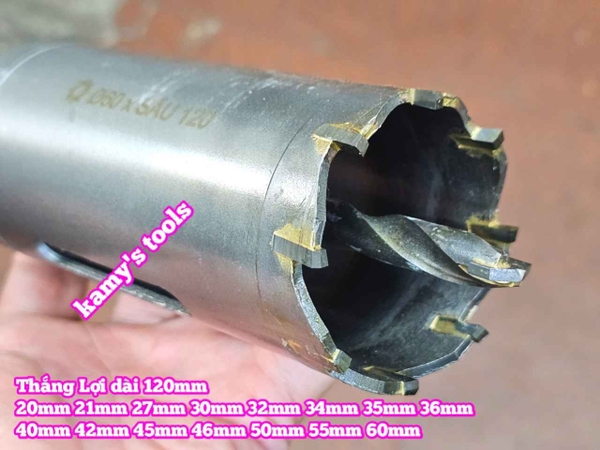 Mũi khoan rút lõi xuyên tường dài 120mm Thắng Lợi 20mm 21mm 27mm 30mm 32mm 34mm 35mm 36mm 40mm 42mm 45mm 46mm 50mm 55mm 60mm