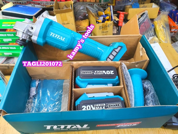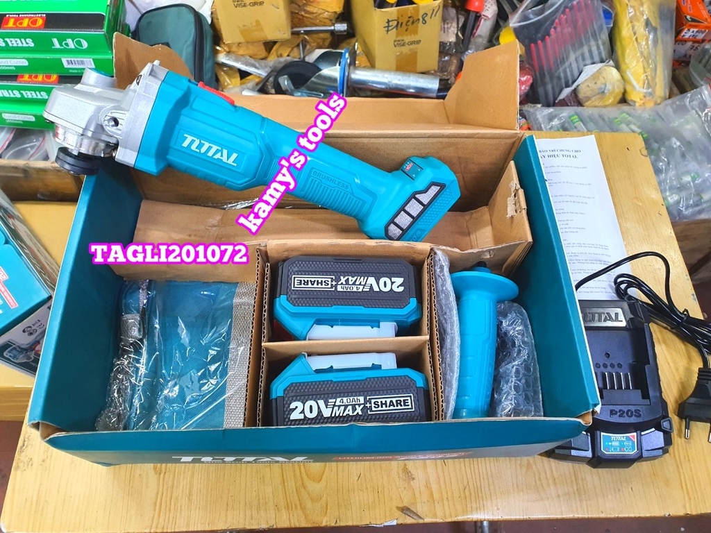 Hãy liên hệ với kamytools để biết thêm thông tin chi tiết sản phẩm TAGLI201072 Máy mài góc dùng pin Lithium 20V Total 4 inch 100mm.