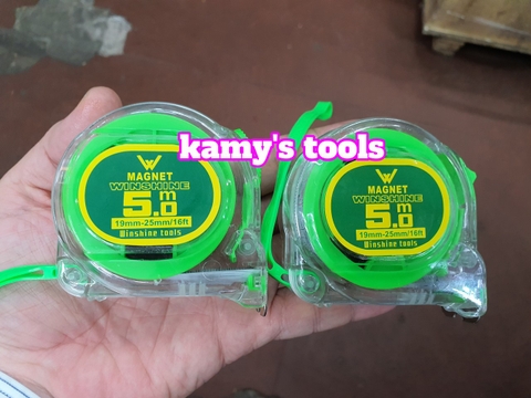 Thước cuộn 5m bản 25mm winshine vỏ trong 1 mặt và 2 mặt có lỗ bang, thước kéo 5m, thước rút 5m
