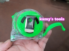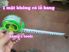 Thước cuộn 5m bản 25mm winshine vỏ trong 1 mặt và 2 mặt có lỗ bang, thước kéo 5m, thước rút 5m Thương hiệu: Winshine Bản thước có đường kính 25mm Loại 1 mặt chỉ in số mặt trước, mặt sau trống không in. Loại 2 mặt với mặt trước in hệ mét, mặt sau có in lỗ bang. Vạch đo hệ mét, in rõ ràng sắc nét rất dễ nhìn. Độ chính xác cao. Đầu thước rút 3 rive chắc chắn. Có móc bằng inox ở đằng sau giúp ta có thể móc vào quần khi không sử dụng rất tiện lợi. Vỏ ngoài được thiết kế trong suốt có thể nhìn thấy lá thước bên trong.