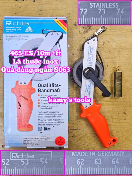 Thước đo dầu Richter 10 mét 465-ES/10m lá thước inox quả rọi bằng đồng ngắn S063 cao cấp chính hãng