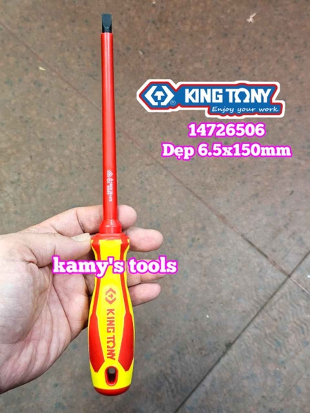Tua vít cách điện VDE 1000V dẹp 6.5mm dài 150mm (6.5x150mm) Kingtony 14726506