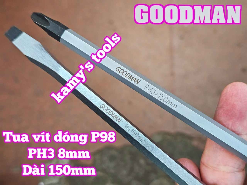 Hãy liên hệ với kamytools để biết thêm thông tin chi tiết sản phẩm tua vít đóng Goodman bake PH3 dẹp 8mm dài 150mm P98+8x150 P98-8x150