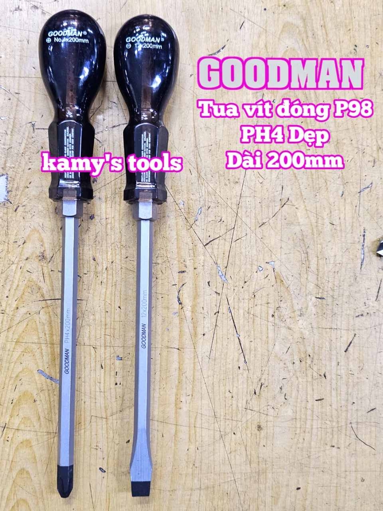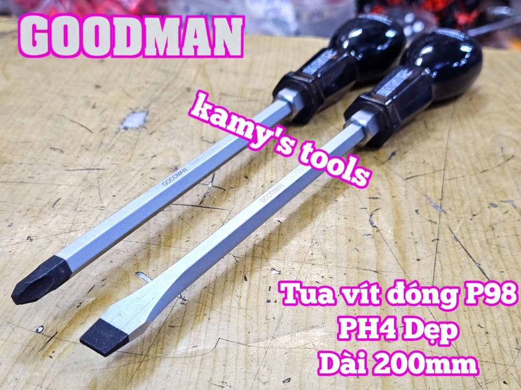 Hãy liên hệ với kamytools để biết thêm thông tin chi tiết sản phẩm tua vít đóng Goodman bake PH4 dẹp 12mm dài 200mm P98+12x200 P98-12x200