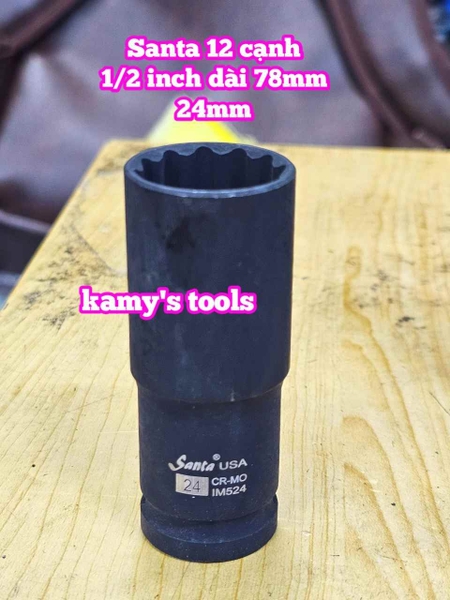 Tuýp 1/2 inch đen dài bông 12 cạnh 24mm IM524 Santa,
