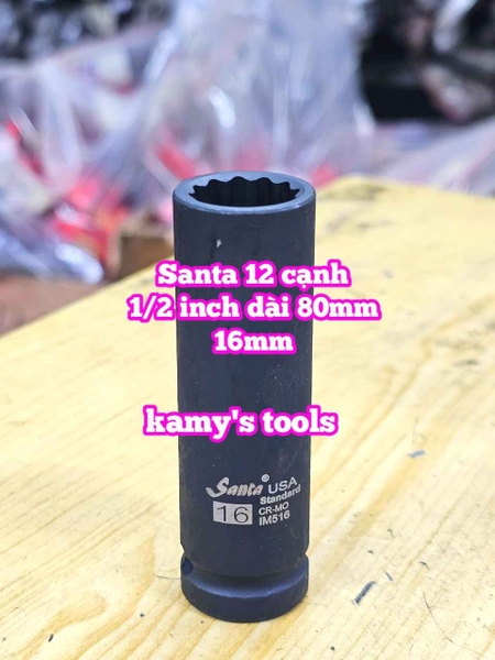 Tuýp 1/2 inch đen dài bông 12 cạnh 16mm IM516 santa,