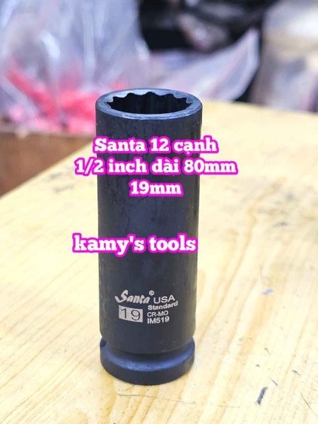 Tuýp 1/2 inch đen dài bông 12 cạnh 19mm IM519 santa,