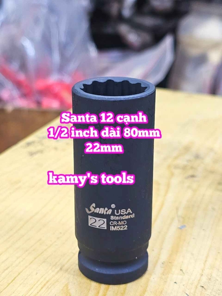 Tuýp 1/2 inch đen dài bông 12 cạnh 22mm IM522 santa,
